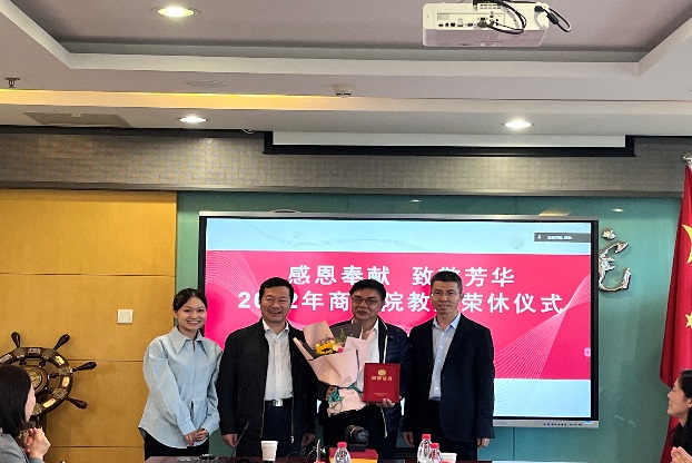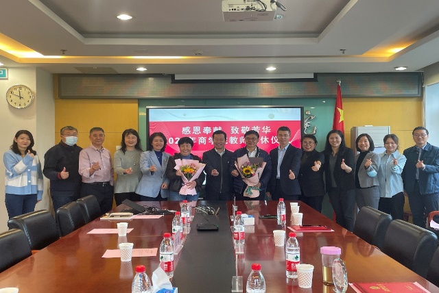 On the afternoon of October 28, the Business School held a retirement ceremony for six retired teachers this year in its Fucheng Road Campus. Liu Minhua,a member of CPC Standing Committee and vice-president of the university and Bi Pingping, deputy minister of the Faculty Affairs Office of the CPC and deputy director of the Office of Human Resources were invited. Representatives of retired teachers, school administration, teachers and students also attended the ceremony. It was hosted by the Secretary of the Party Committee of the School Zhang Chunping with online and offline sessions.