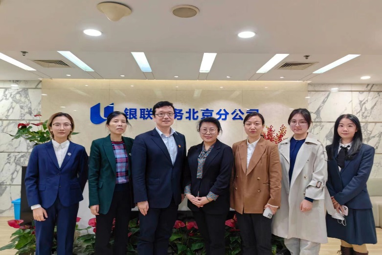 On the morning of March 19, Zhang Qian, Secretary of the Business School, came to visit the Beijing branch of the China UnionPay Merchant Services Co., Ltd. (hereinafter referred to as Beijing branch of China UMS) for expanding jobs and promoting employment with her team. Ruan Minghua, financial controller of the Beijing branch of China UMS, Lu Lingyan, general manager of the Comprehensive Division, hiring manager Fan Linjuan and several teachers from the Business School were present.