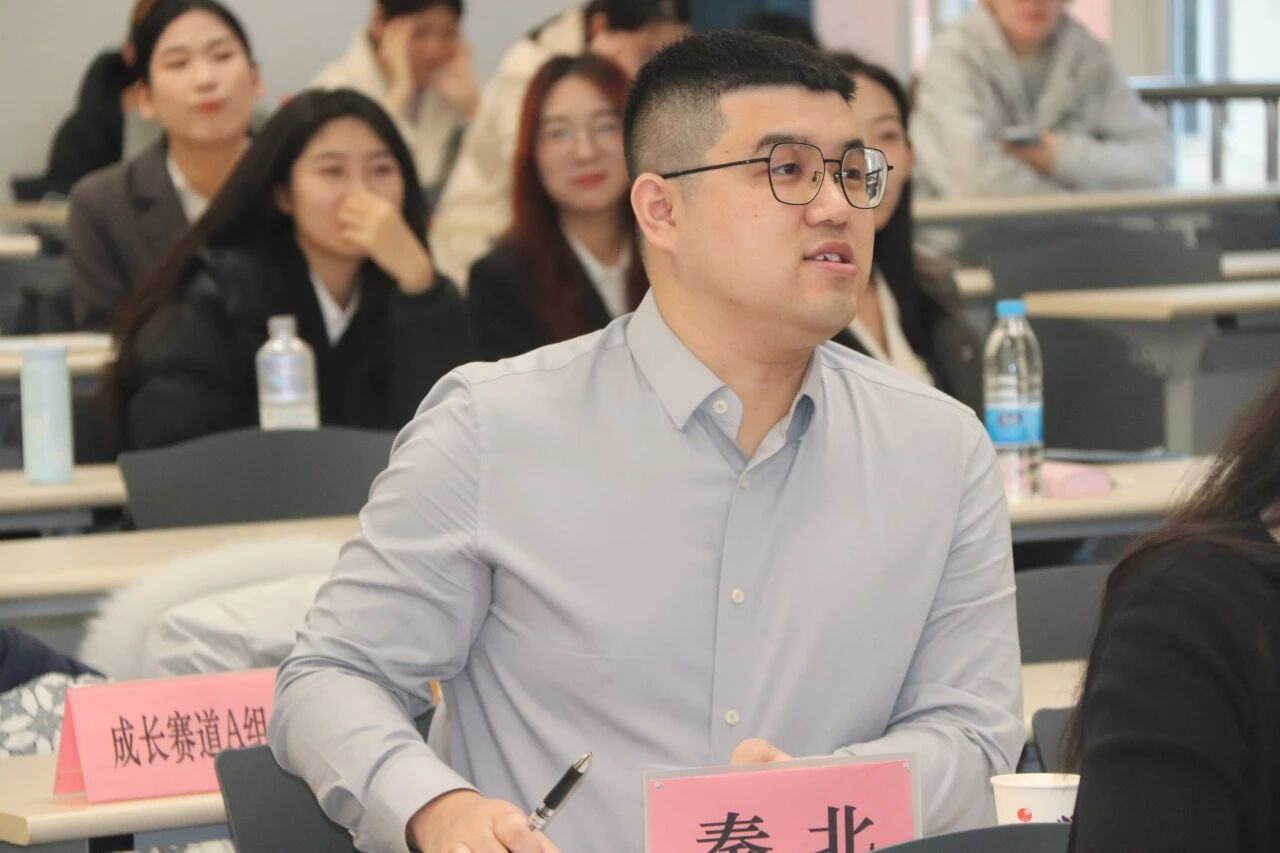 职业规划大赛分为成长赛道和就业赛道。参赛选手按照分组顺序依次上台,每位选手进行3分钟的求职综合PPT展示,评委依据选手陈述进行随机提问及点评建议。