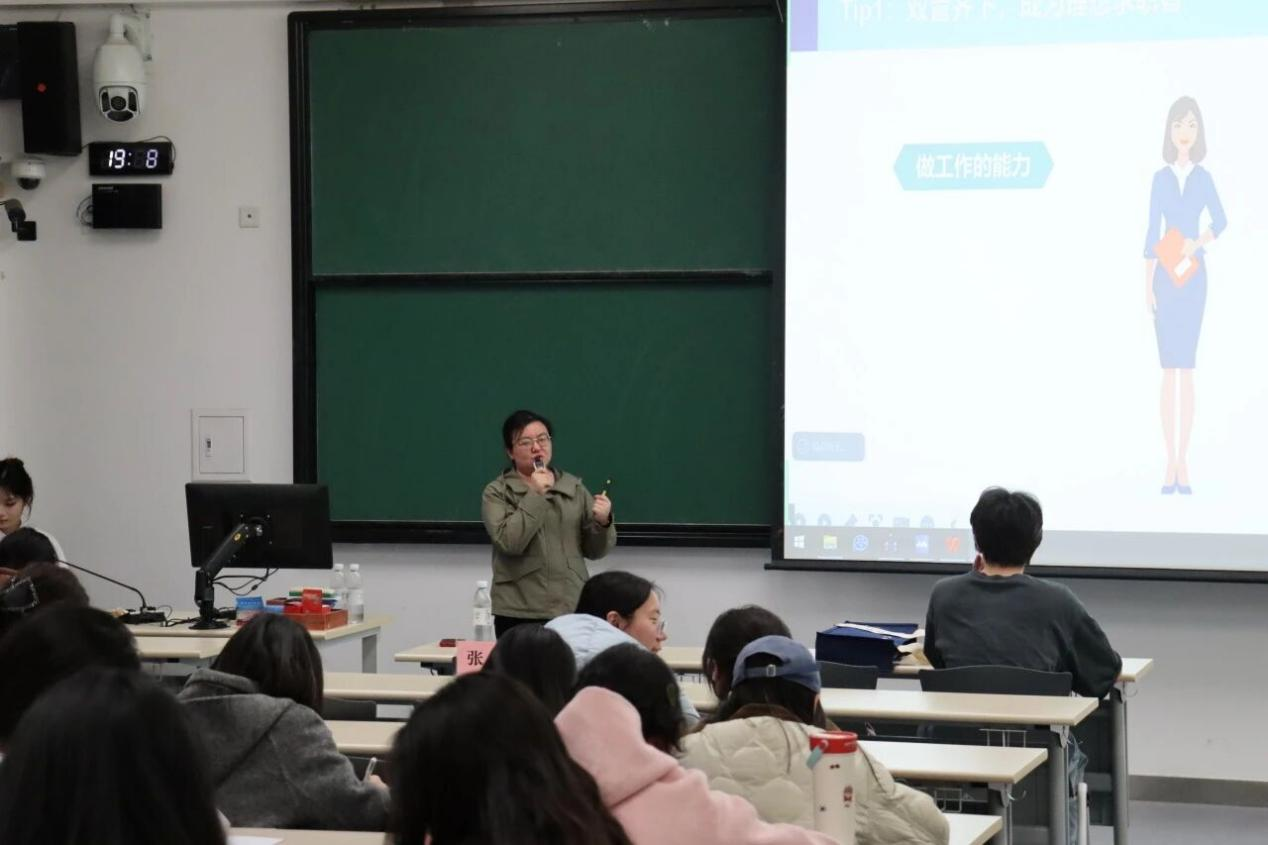 支晓静学姐毕业后先后在百度、美团、字节、快手等互联网大厂工作,她分享了在互联网行业工作的体验,通过解析互联网行业特点,为同学们提供了从实习选择到职业跃迁的实操建议,并现场解答了关于工作强度、跳槽策略等热点问题。