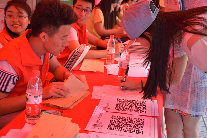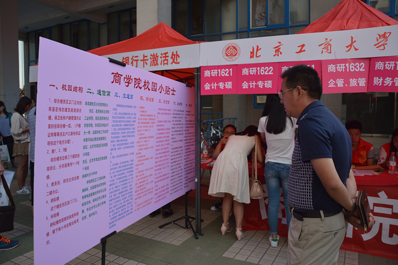 迎新工作人员早上7:00就已经全部到位,为接待新生报到做了充分的准备,服务工作中注重创新,亮点颇多。商研会同学精心制作了3块展板:新生报到流程详细介绍了报到的步骤,一目了然方便同学们顺利办理报到手续;宿舍信息表具体到班级、姓名、学号,方便同学们及时查询;校园生活小贴士介绍学校及周边的学习、交通、美食等各种信息,为同学们的学习、生活带来了及时的帮助和全方位指导。学院此次采用按班报到的模式,除了做出醒目的班级提示牌外,还提前建立好了各班微信群,并将二维码放置于报到处,实现新生即时入群,为后续班级建设顺利开展打下良好基础。学院提前将银行卡、饭卡、报到材料等资料按照班级、姓名用资料袋分装,并提前在信封上写好班级、姓名、宿舍,不仅方便同学更大大加快了办理入学手续进度,面对近200名新生的庞大队伍真正实现了无需排队、高效办理。此外,在场的研会成员以及工作人员对新生的疑问与困惑一一进行详尽地解答,并给出研究生学习、生活的相关建议,形成热烈的交流、咨询场面,使新生充分感受到探花视频