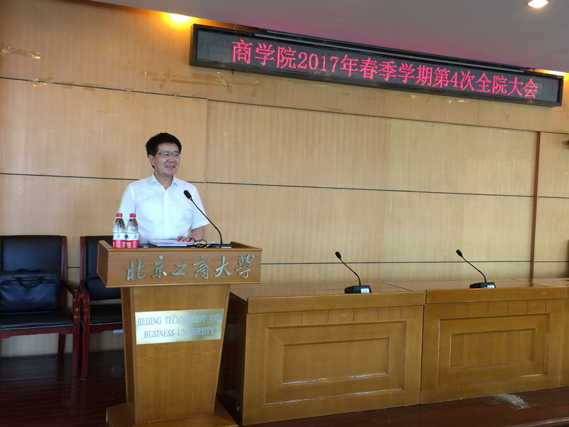 会议首先由办公室主任赵品讲解了2017年学校和学院的考核文件,着重指出今年考核与往年的不同之处。王国顺院长号召教职工要对照考核要求找出自身不足,及时调整工作重心,以高标准严要求投身学院发展建设,在考核中取得好成绩。王院长对本学期学院的人才培养、党建思想政治工作、博士点申报、一流学科申报、MBA招生、科研项目申报、学生工作、校友工作等都进行了总结。各项工作平稳运行,活动有声有色。假期将至,王院长提醒全院教师严格遵守放假时间,注意假期出行安全。