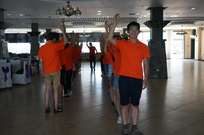 一天的素质拓展活动,以组建“最强战队”开始。大家在培训师的指引下随机分成两个小组,进行了破冰小游戏。随后各自战队选择了自己的队长、副队长、安全员等,并一起创建了团队的名称、口号、队歌和队形,进行展示。