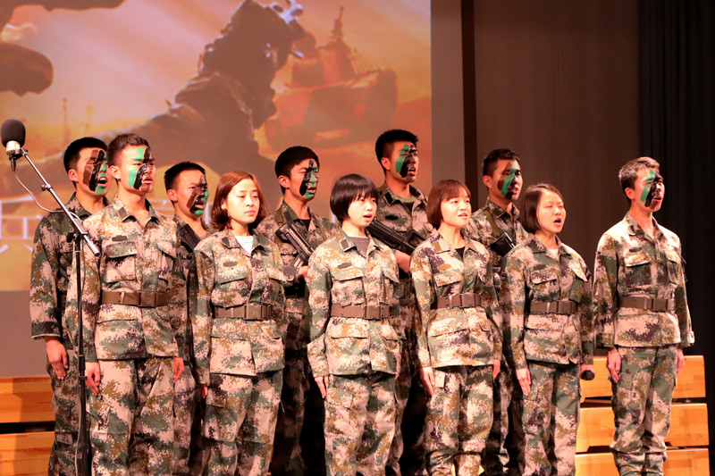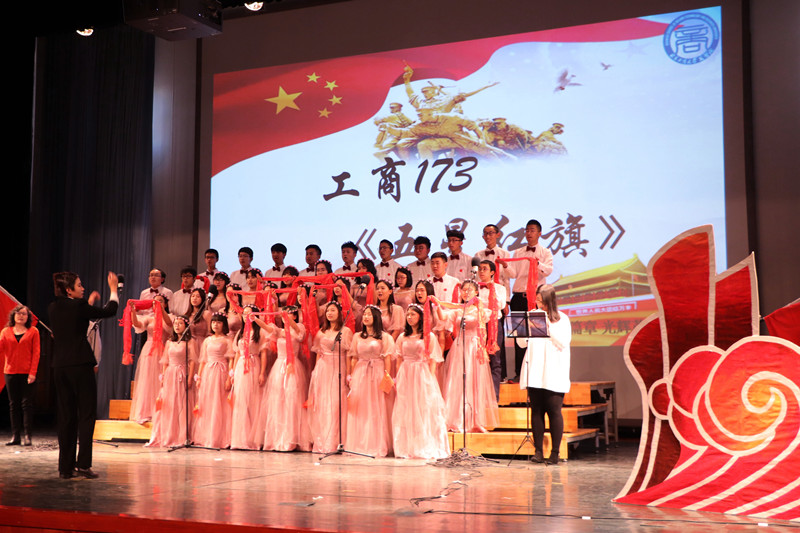 表彰大会后是纪念“一二•九”运动82周年“不忘初心跟党走,学子共创新时代”合唱比赛。本次比赛分为光辉革命路、青春正当时、时代新华章三个篇章。在比赛中,17级各个班级都全情投入到了合唱中,曲目中包含《精忠报国》、《五星红旗》、《没有共产党就没有新中国》、《爱我中华》和《歌唱祖国》饱含爱国主义情怀的经典之曲,亦包括《红蜻蜓》、《难忘茉莉花》、《我相信》、《相亲相爱》及《我的未来不是梦》洋溢着青春色彩的活力之歌,还有《明天会更好》、《最初的梦想》、《国家》、《青春舞曲》、《奔跑》令人奋发向上、憧憬未来的希望之音。工商类163班张泽琦的《丰碑的传说》、老兵志愿服务团的《强军路上有我》、舞蹈团的《青春似火》让现场再次掀起了高潮。同学们动情的演绎感染了在场所有的观众,更激励了大家学习十九大精神,肩负着使命与责任,创造中国更美好的明天。