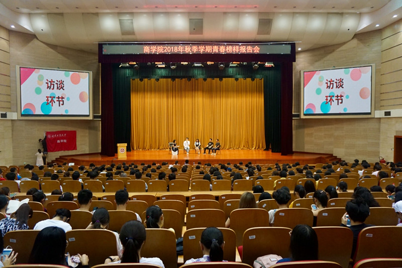 为帮助18级新生消除内心迷茫,确立正确的人生目标,探花视频 于9月10日晚在A报告厅举行了2018年秋季学期青春榜样报告会。报告会采用访谈形式,三位校友和一位退伍维吾尔族在校生向新生讲述了自己的成长故事、经历和大学感悟,并给新生们提出很多有益的建议,不少新生主动提问,报告会的互动氛围热烈,对新生做好大学规划、树立理想目标具有引领和借鉴意义。