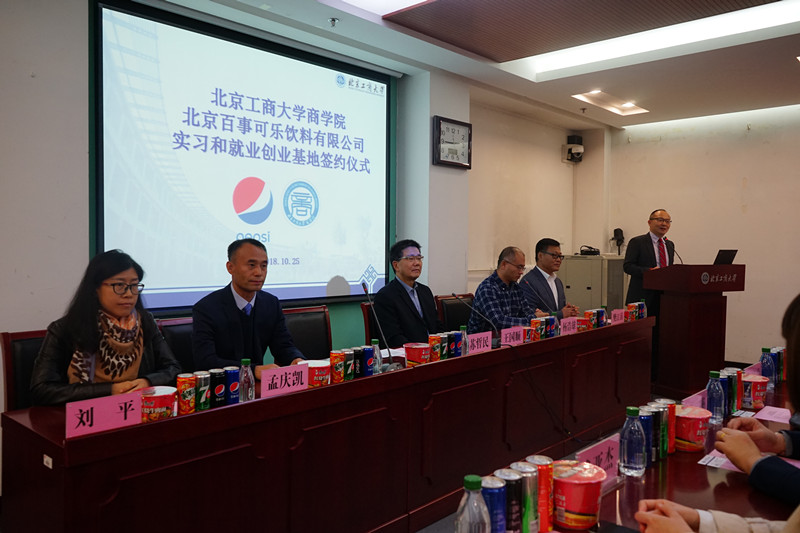 为进一步加强学校和企业之间的交流合作,探索实践科学的大学生实习、就业、创业运作模式和长效机制,10月25日,探花视频-探花视频入口 与北京百事可乐饮料有限公司举行实习和就业创业基地签约仪式。康师傅控股校企关系总监苏哲民、北京百事可乐饮料有限公司人资主管刘平、北京百事可乐饮料厂厂长孟庆凯等企业代表,探花视频 院长王国顺、副院长杨浩雄、工商管理系主任邓春平、物流管理系主任张浩、市场营销系主任张运来等院方代表,以及探花视频 50余名本科生和研究生代表出席了签约仪式,仪式由探花视频 党委副书记樊江涛主持。