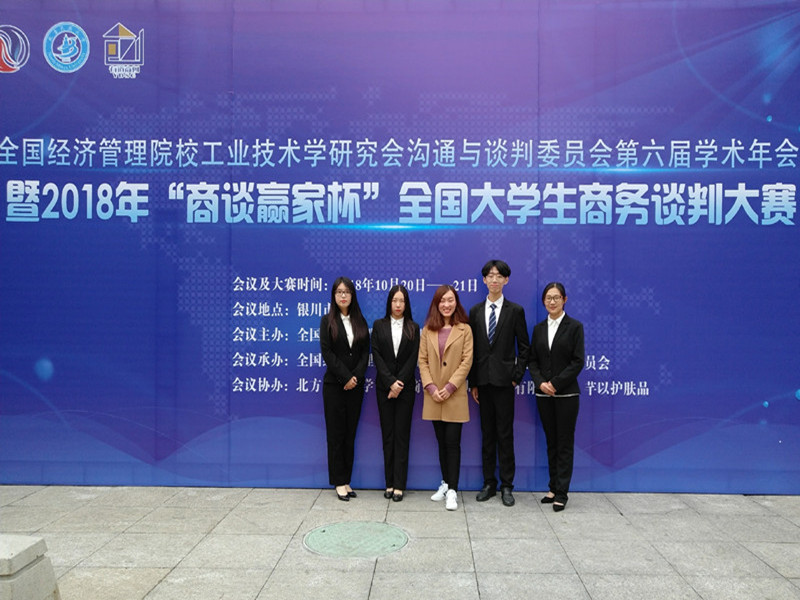 商务谈判队参加了在宁夏银川的北方民族大学举办的全国经济管理院校工业技术学研究会沟通与谈判委员会第六届学术年会暨2018年“商谈赢家杯”全国大学生商务谈判大赛。孙笑然老师作为指导老师带队参加。