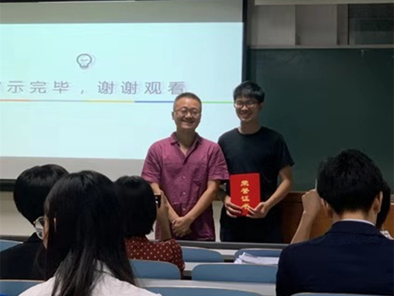 最后,杨浩雄教授对本次校园赛进行了总结,并且,杨浩雄教授和周永圣副教授分别为获得一等奖和二等奖的队伍颁发了获奖证书。据悉,在本次校园赛中,我校同学积极参与,共提交方案26份,经过老师们的评审最终选出7支队伍进入本次校园赛答辩。我校同学们在这次比赛中相互学习、相互合作,收获了老师的宝贵意见,相信他们通过这次比赛一定都受益匪浅、收获良多。同时,也祝愿晋级队伍在接下来的北京市比赛中赛出风格、赛出水平,为自己和学校赢得赞誉!