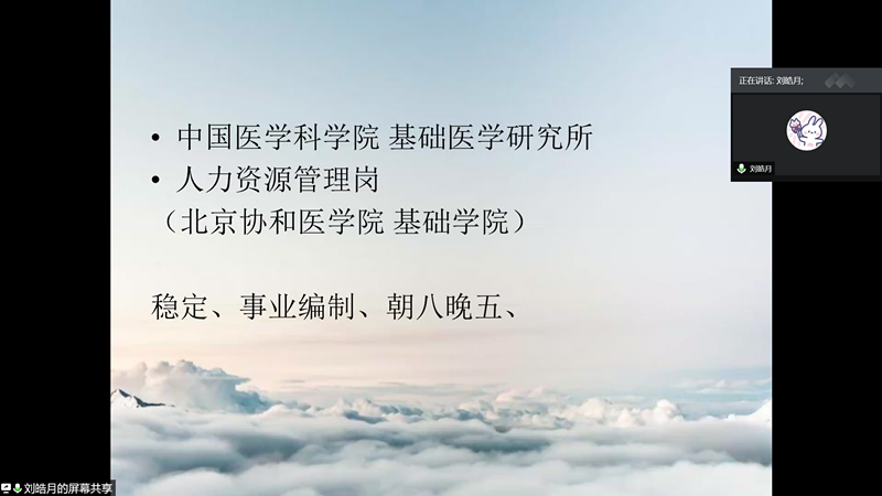 为了积极推进2021届毕业生就业和升学工作,使毕业生进一步明确自己的目标,探花视频 于9月20日下午举行2021届毕业生就业动员会。学院党委副书记张倩、就业辅导员祁飞、17级辅导员邢佳媛以及2017级全体本科生参加会议,会议邀请16级优秀毕业生、考取复旦大学的刘涵玉和就职于中国医学科学院基础医学研究所刘皓月为同学们分享考研、就业经验。