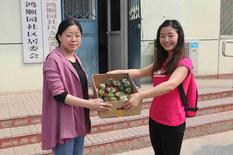 党员志愿服务团将新鲜的绿植带到社区分发给社区居民们,为社区增添新的生机。鸿顺园社区党支部书记张贤表示,此次活动的开展意义重大,环保公益正是社区所缺少的项目,此次活动可以唤起社区居民对环保公益事业的关注,从自己做起,为环保公益贡献自己的力量。
