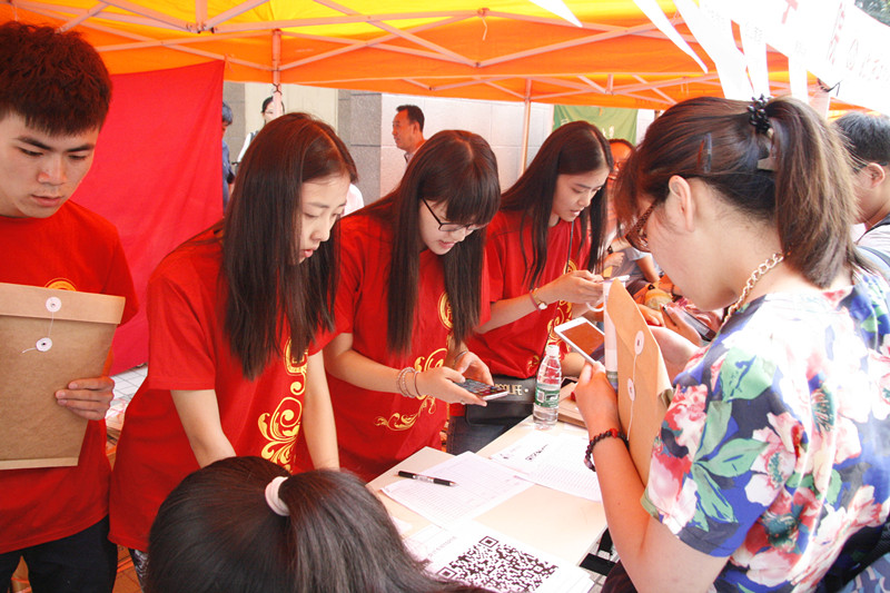 探花视频 副校长谢志华,探花视频 院长王国顺,副院长毛新述,MBA中心主任张继德,研教秘刘卓老师先后莅临迎新现场,询问现场工作人员迎新的具体情况,与新同学亲切交谈,鼓励2015级新生尽快融入新环境,还与新生家长详细交谈,了解新生入学存在的问题。