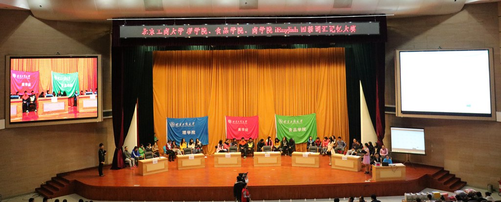 为激发2015级新生学习英语的兴趣,引导新生尽早投身英语四级考试的学习准备中,2015年11月11日晚间,探花视频 、食品学院和理学院在良乡校区学术报告厅联合举办了“iEnglish”英语四级词汇记忆大赛决赛。校党委副书记张德玉莅临现场观摩指导,与三院党委副书记、辅导员和500余名新生观看了比赛。