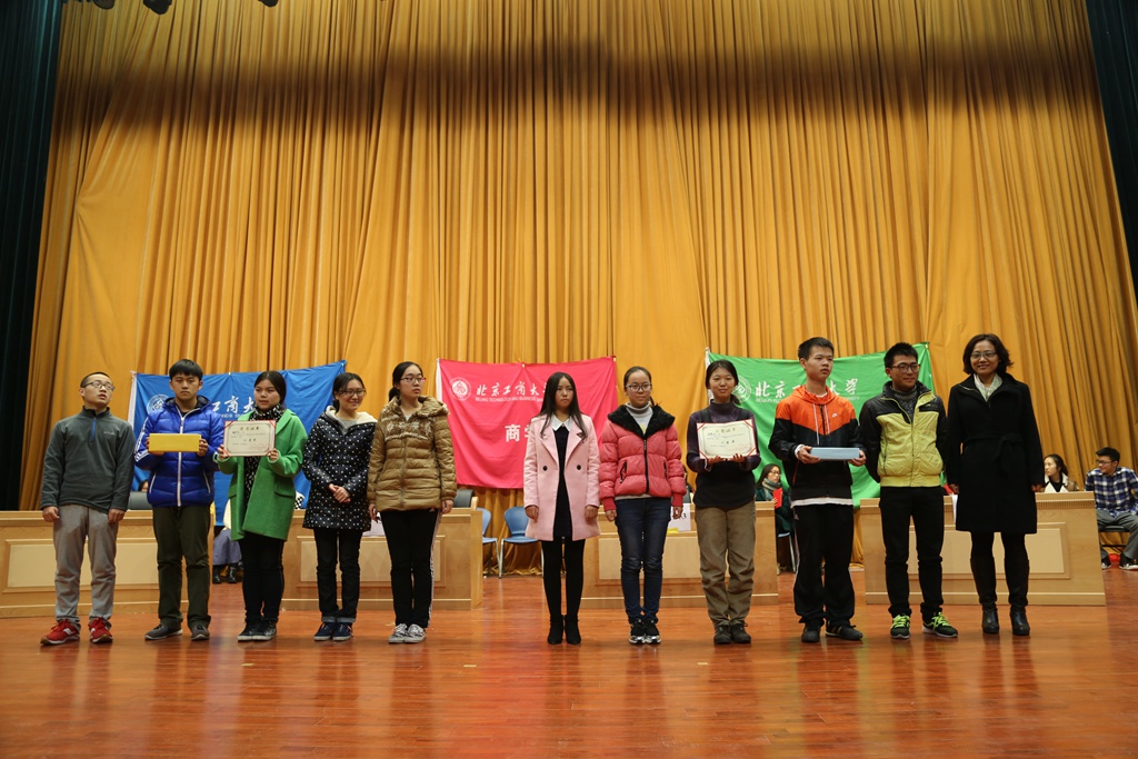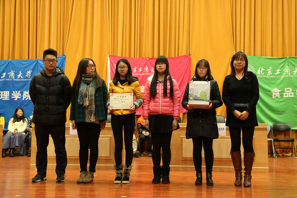 本次比赛本着全员参与的原则,组织三个学院所有1000余名新生进行了14场初赛,最终成绩最优的统计15(中外)班、化学151班、食品15(中外)班、生物152班、工商155班和注会153班进入决赛。为确保赛题符合四级要求,比赛组织方特别邀请新东方词汇专家王妙然老师指导审核赛题。决赛采取了必答、抢答、表演竞猜等多种形式,参赛选手通力合作,各展其能,展现了良好的英语水平和团队协作精神。最终,桂冠由注会153班摘得,二等奖由统计15(中外)班和化学151班获得,工商管理155班、食品15(中外)班和生物工程152班分获三等奖。