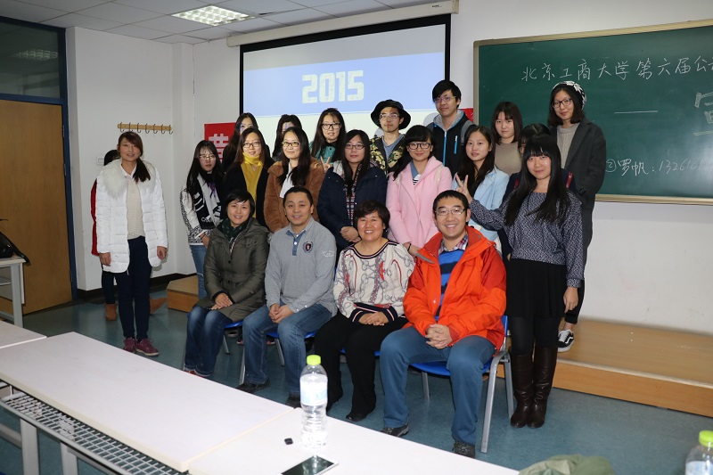 张景云教授为同学们解读了本届校公关大赛主题——“新新媒体环境下北京品牌的活化与塑造”。希望同学们在此次大赛作品中,突出“互联网+”“文化+”和”设计创意+”等概念,挖掘人文与社会环境中的新元素开展策划,把大学生的活跃思维和敢想敢干、勇于创新的个性充分表达出来。她还向同学们展示了我校团队参加“全国大学生公共关系策划大赛“和”大学生中华老字号创意创新创业大赛“上的获奖作品,为本届参赛者提供示范和参考。她还突出强调了本次大赛较往届大赛的几个亮点:一是选题企业增多,同学们可选择的范围更加广泛,选题主要来自北京老字号品牌企业,除了拟定的选题,同学们还可以根据自己的兴趣选择其他相关品牌;二是策划案不局限于“公关传播活动类”,凡是有助于”品牌活化“的营销创新方式都可以纳入策划案中,同学们可以根据自己的创意点有所侧重地选择;三是奖项的设置比以往更加灵活,根据评委打分,按照文案和现场展示质量确定获奖等级和数量。最后,营销与公关协会新任会长贾倩同学做了总结发言,并表示,协会将为大赛的举办做好相应的组织和协调工作,竭诚为同学们做好赛事服务。宣讲会结束后,部分同学与四位老师互动,请教了大赛中的有关问题,并与老师们合影留念。