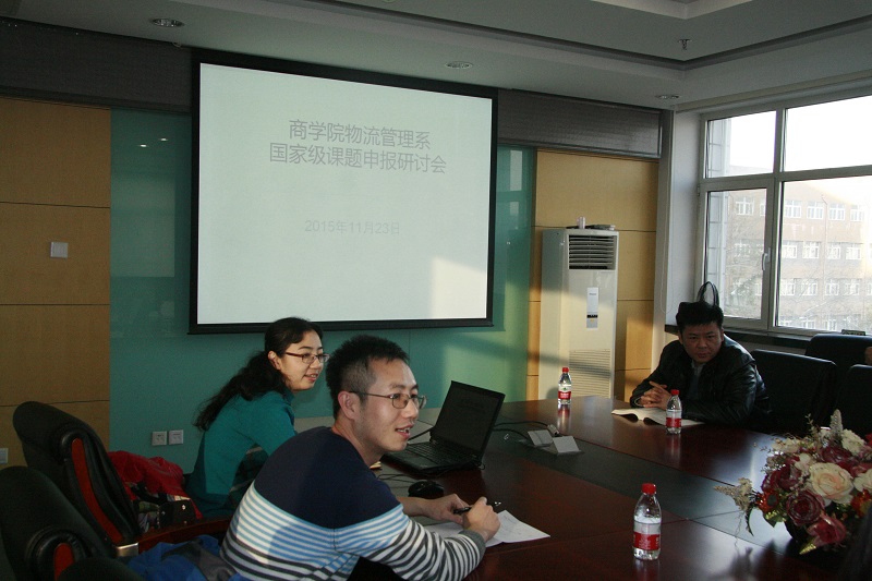 首先,物流管理系主任崔丽副教授介绍了申报国社课题的题目,研究内容、研究意义等,并提出了课题项目的人员分配的问题。物流管理系的其他老师围绕崔老师的课题积极讨论,并建议多结合我国当下经济环境实际情况,可以从大数据背景,“供给侧管理”角度进一步研究分析。